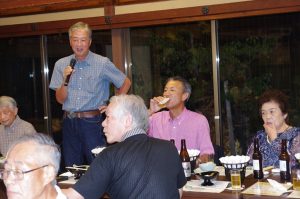 参加される皆さんの席は、受付にて抽選で決まりますが、宴会が始まるとみなさん飲み物を持って移動され大いに盛り上がりました。