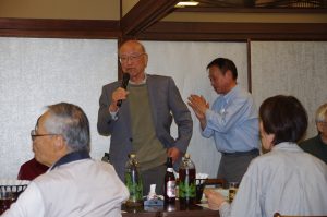 参加される皆さんの席は、受付にて抽選で決まりますが、毎回ですが、宴会が始まるとみなさん飲み物を持って移動され大いに盛り上がりました。